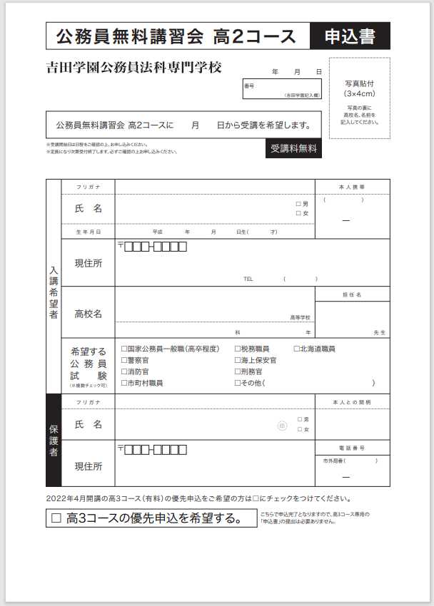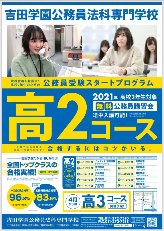 吉田学園公務員法科専門学校「公務員講習会高2コース」担当者宛