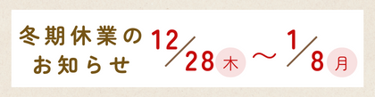 冬期休業のため、下記の期間中、業務が休業となります。