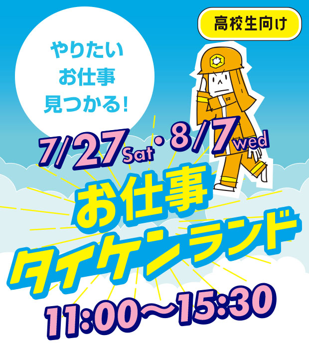 目指したいお仕事を検討中の高校1・2年生の皆さん必見!7/27・8/7夏休み開催🍹🎐『お仕事タイケンランド』