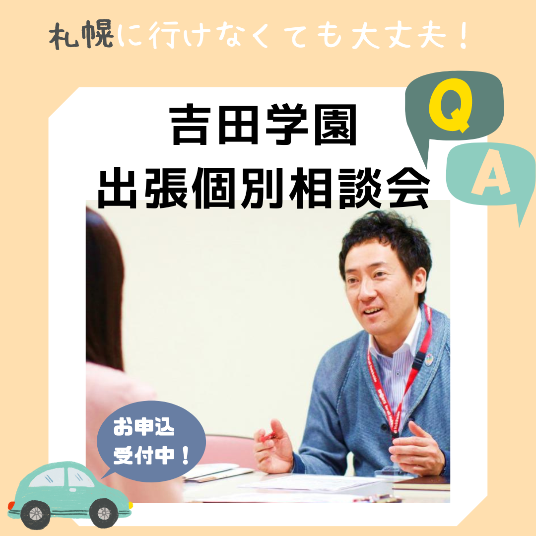 📢本校へいらっしゃるのが難しい方へ 「吉田学園出張個別相談会」開催が決定いたしました!皆さんの地域に進学アドバイザーが伺います🚙 カリキュラム・入試・学費・奨学金・住まいの事など、お気軽にご相談ください。保護者の方もご参 … 続きを読む 【2025年1月】出張個別相談会&AO面談会🏡